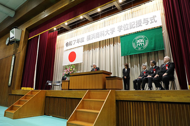 開学以来初めてとなる、横浜市長 山中竹春様が出席され卒業生に対して祝辞を述べられました。